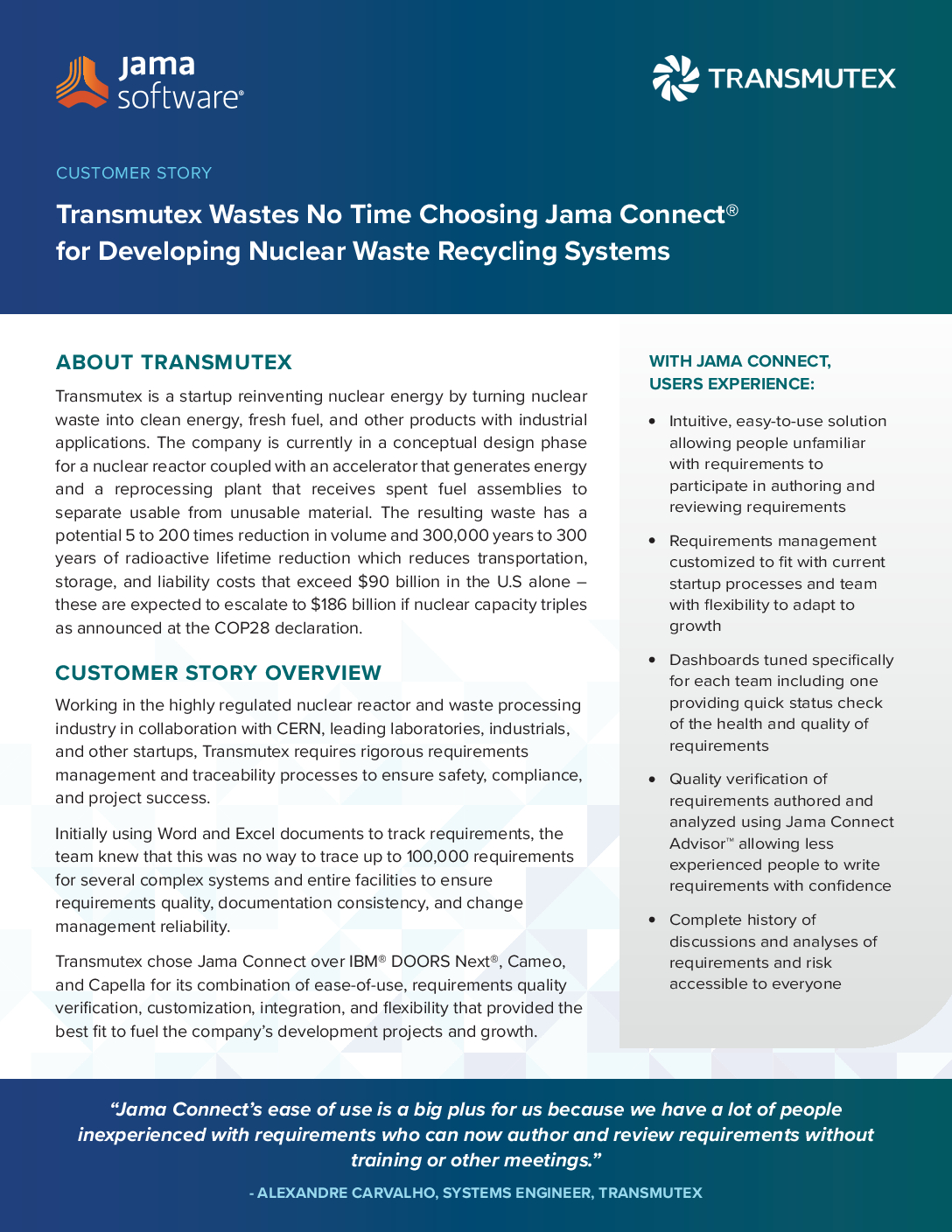 Learn how Jama Connect helps Transmutex achieve compliance, streamline processes, and accelerate innovation in nuclear energy.