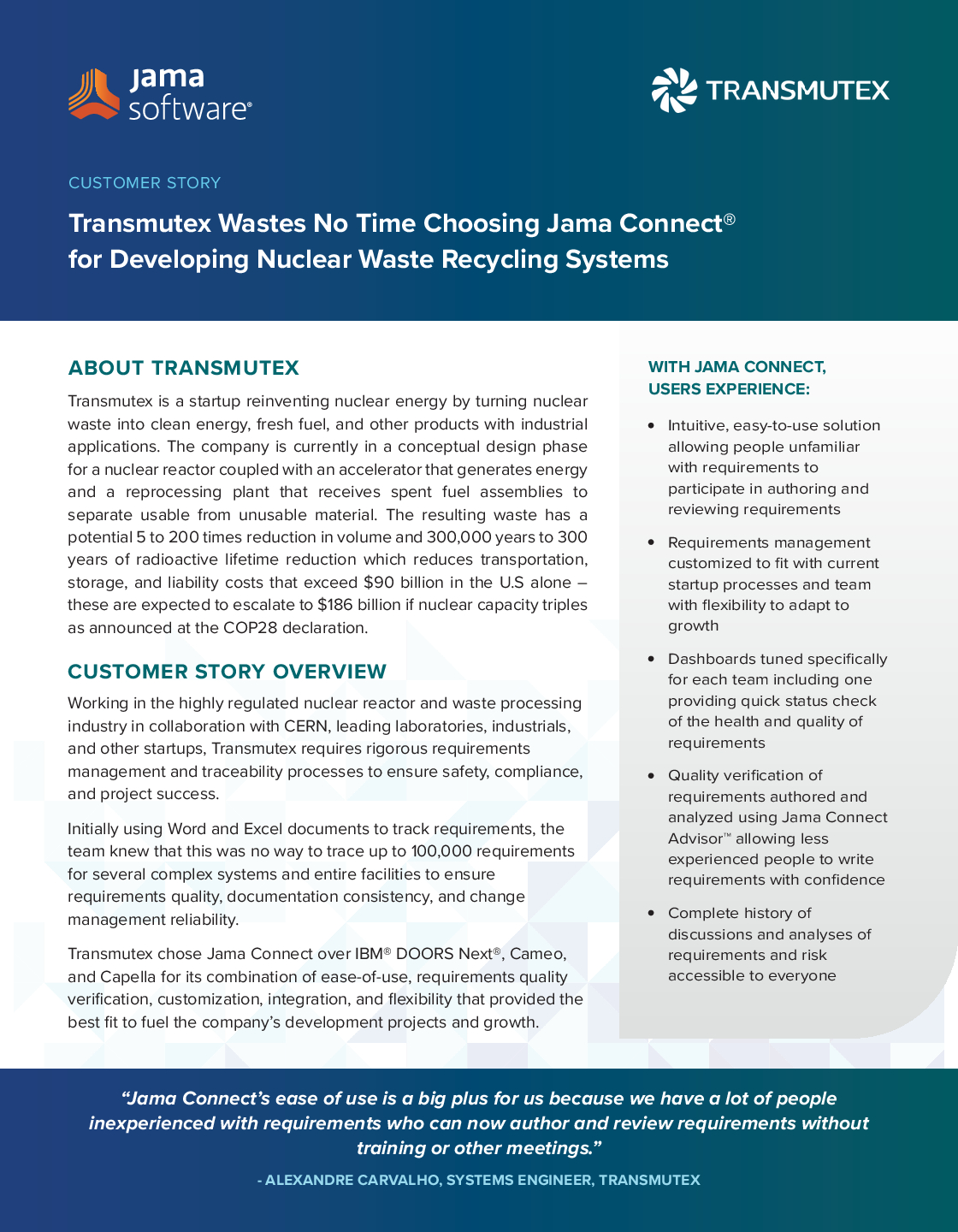 Transmutex Wastes No Time Choosing Jama Connect® for Developing Nuclear Waste Reprocessing Systems