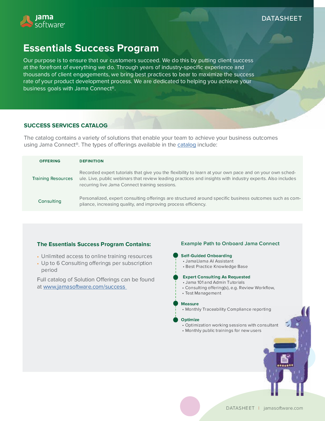 In this datasheet, we examine the details included in the Jama Software Essentials Success Program, such as: