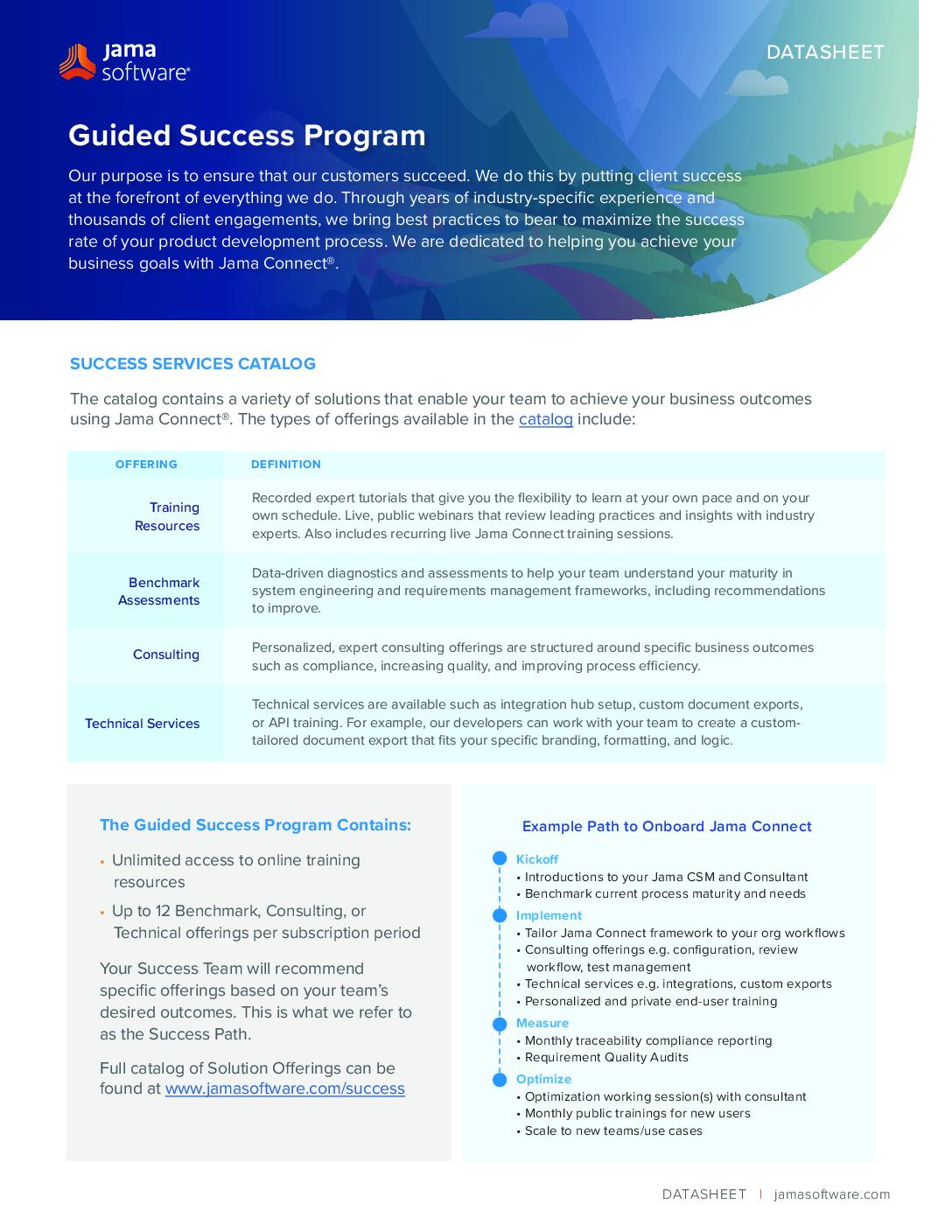 In this datasheet, we examine the Jama Software Guided Success Program, including: