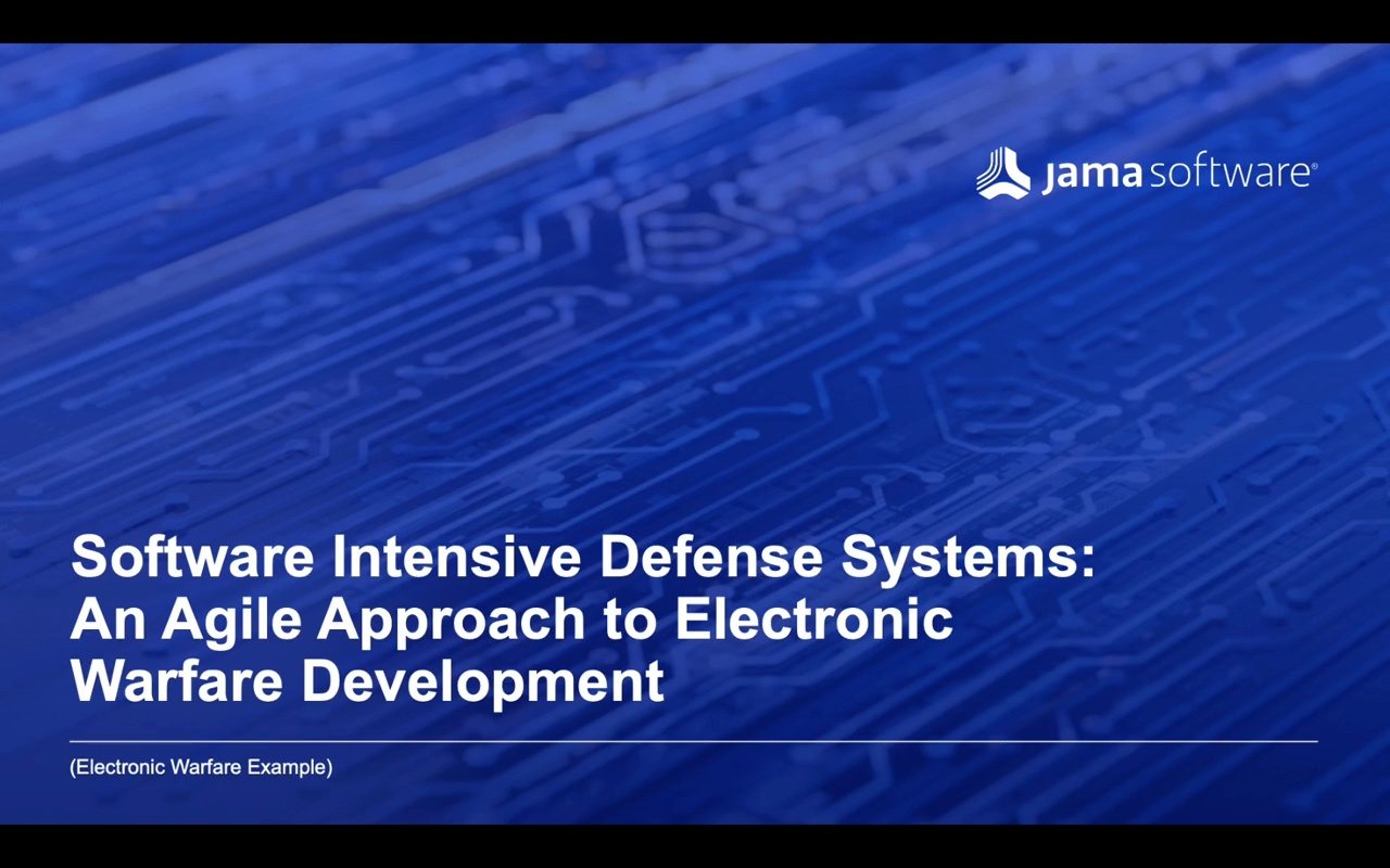 In this webinar, Cary Bryczek, Solutions Architecture Director, A&D at Jama Software, explores the real-world challenges of managing requirements in software intensive defense systems and shares how an agile, structured approach can improve speed, alignment, and program confidence.